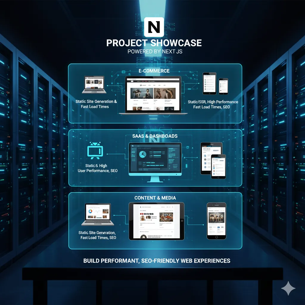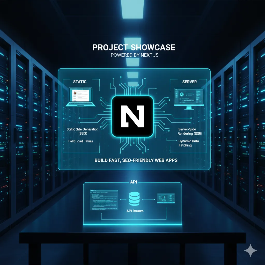 Next.js is a React framework that enables several extra features, including server-side rendering and static rendering. React is a JavaScript library that is traditionally used to build web applications rendered in the client's browser with JavaScript.