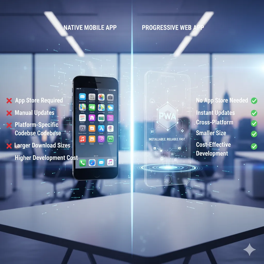 A PWA, or Progressive Web App, is a web application that uses modern web technologies to deliver an app-like experience on any device, from a single codebase. PWAs can be installed on a device, work offline, and provide features like push notifications, making them a hybrid between a website and a native app