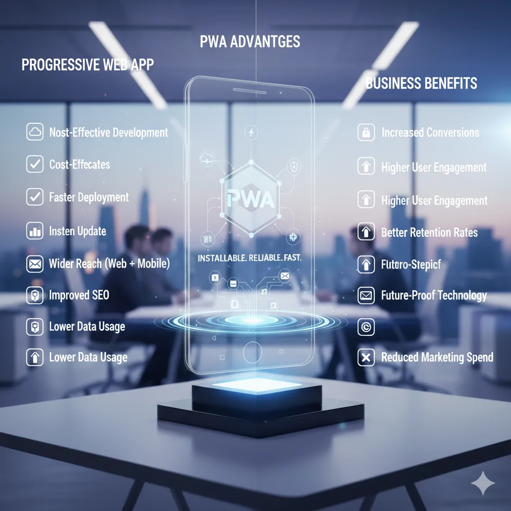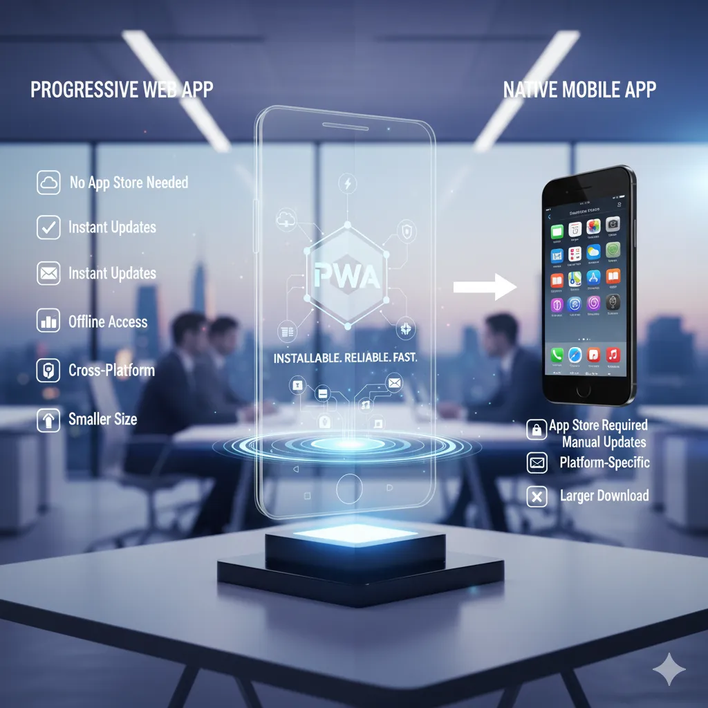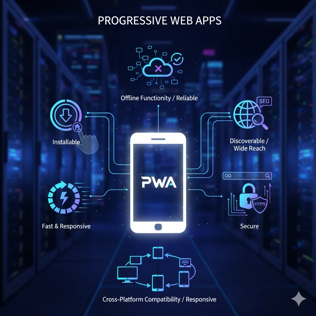 A PWA, or Progressive Web App, is a web application that uses modern web technologies to deliver an app-like experience on any device, from a single codebase. PWAs can be installed on a device, work offline, and provide features like push notifications, making them a hybrid between a website and a native app